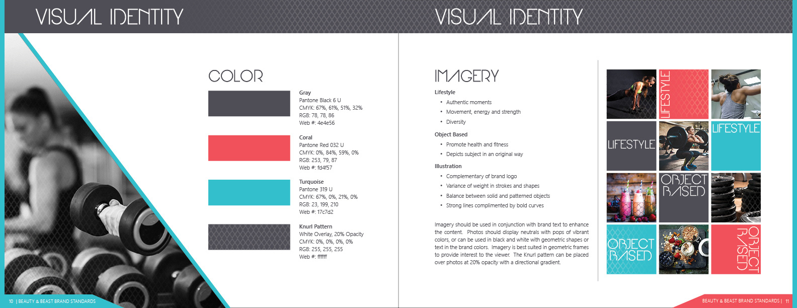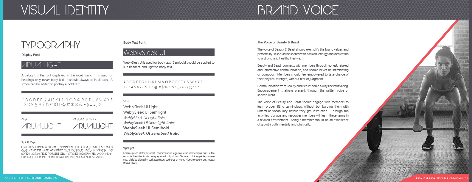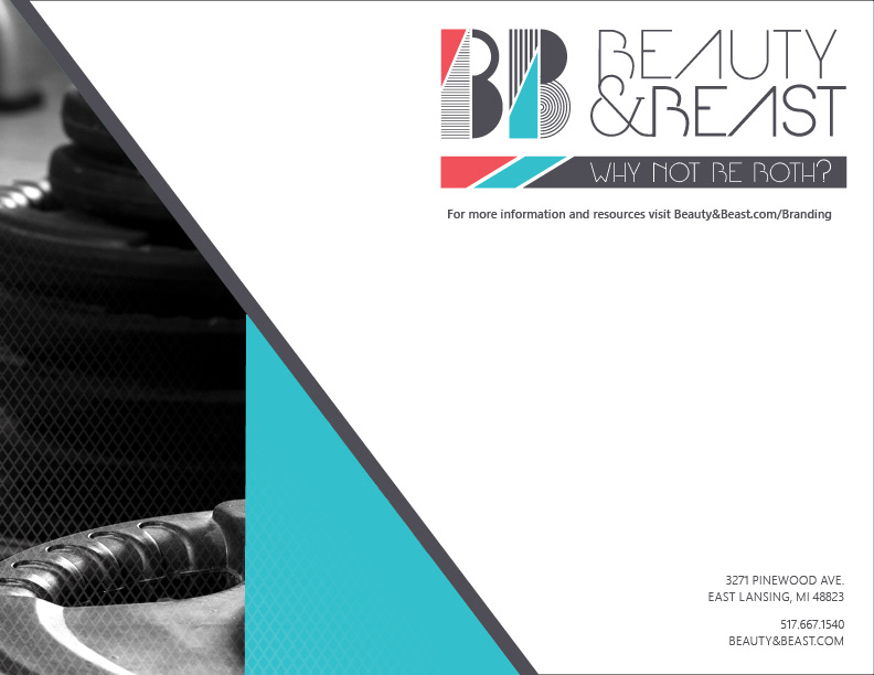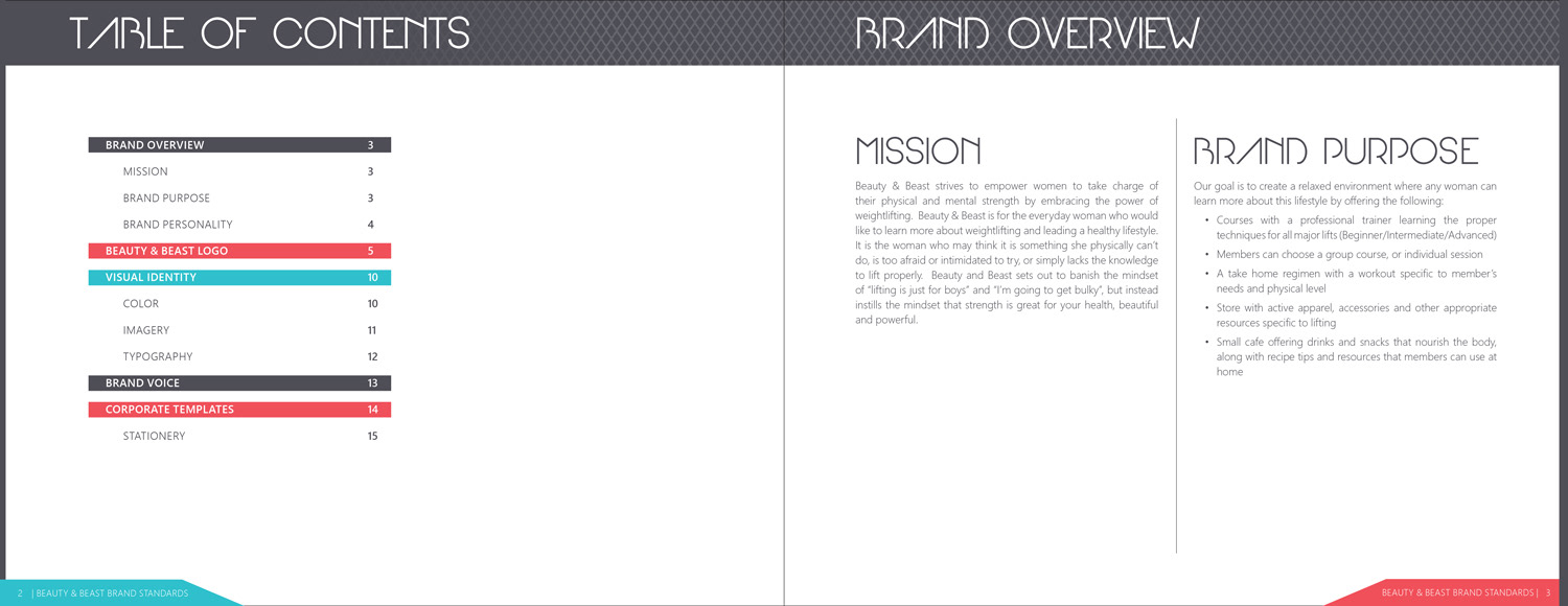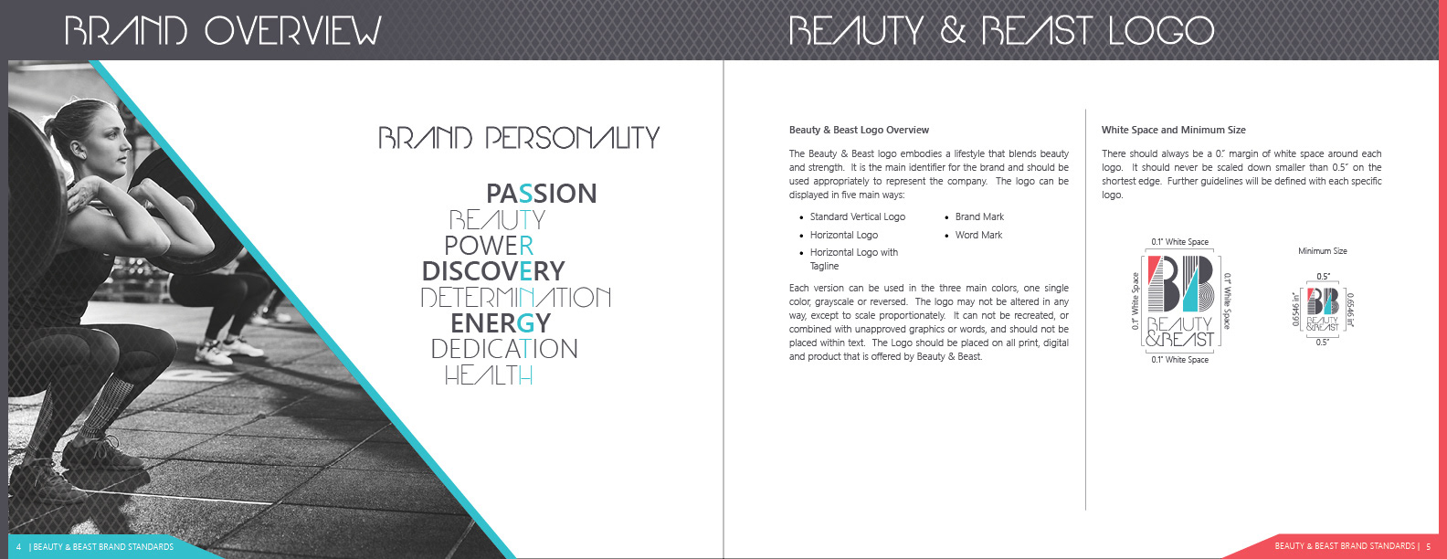 Logo and brand guide for Beauty & Beast, a gym that teaches women weightlifting