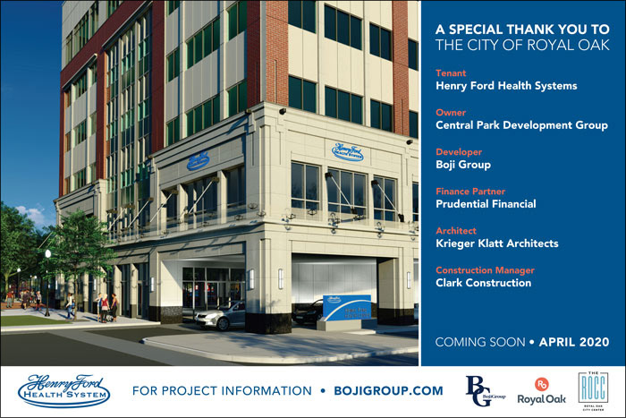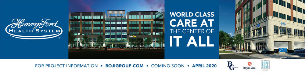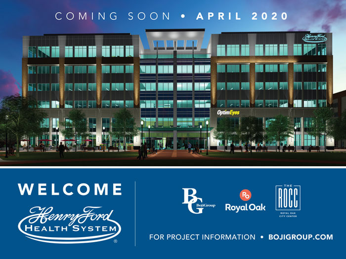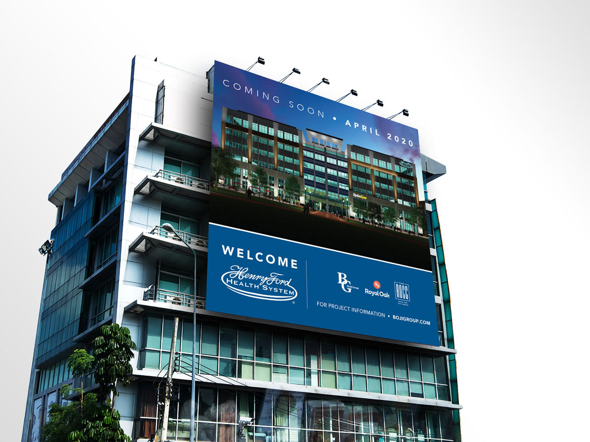 Outdoor signage and fence mesh for Henry Ford Health System construction project