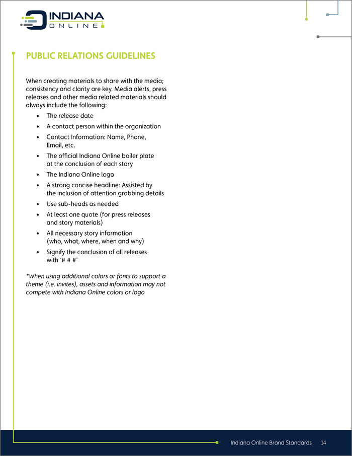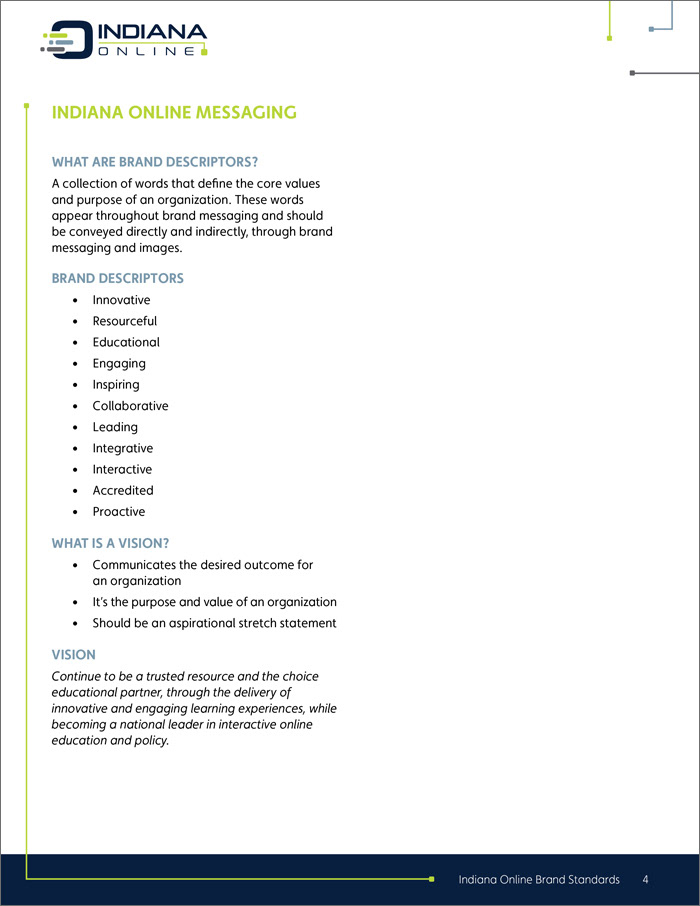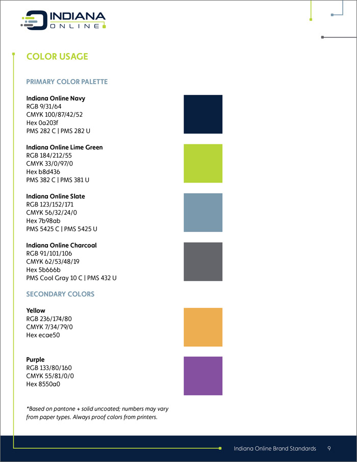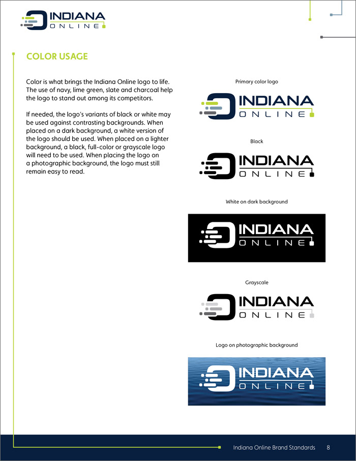 Indiana online logo, collateral and brand standards
