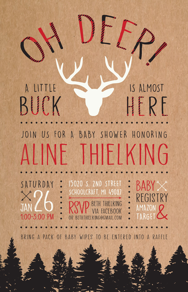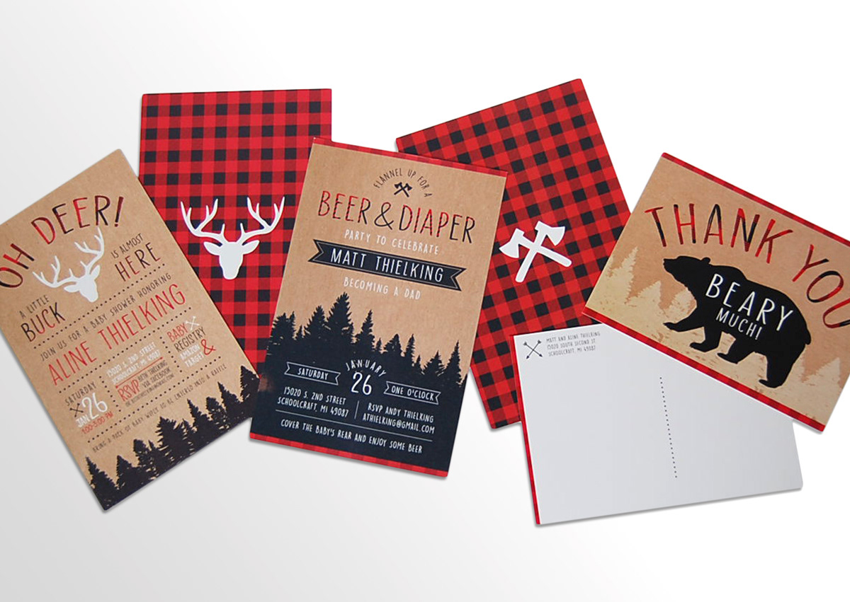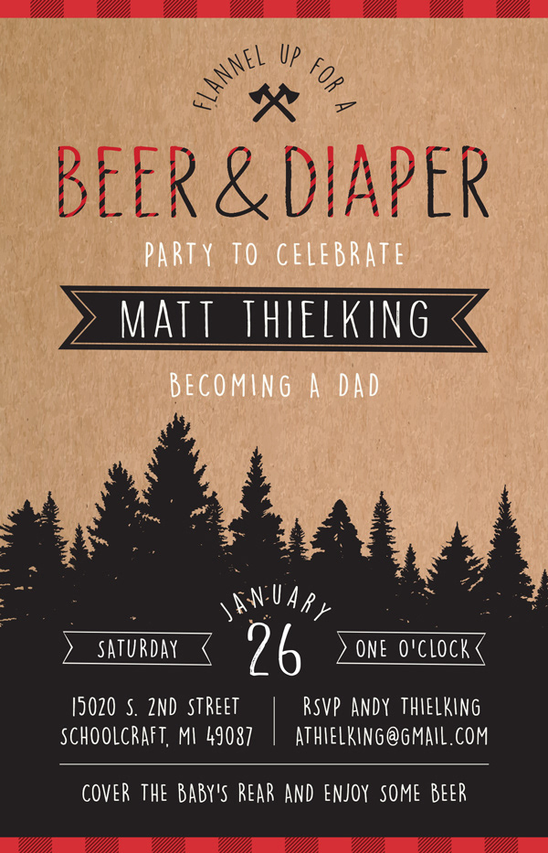 Baby shower invitation, diaper party invitation, thank you card, game card and raffle sign