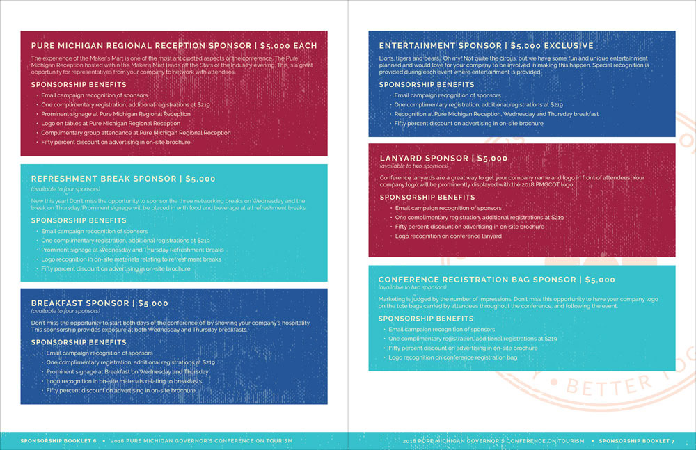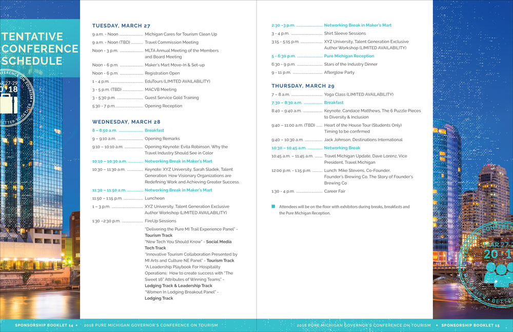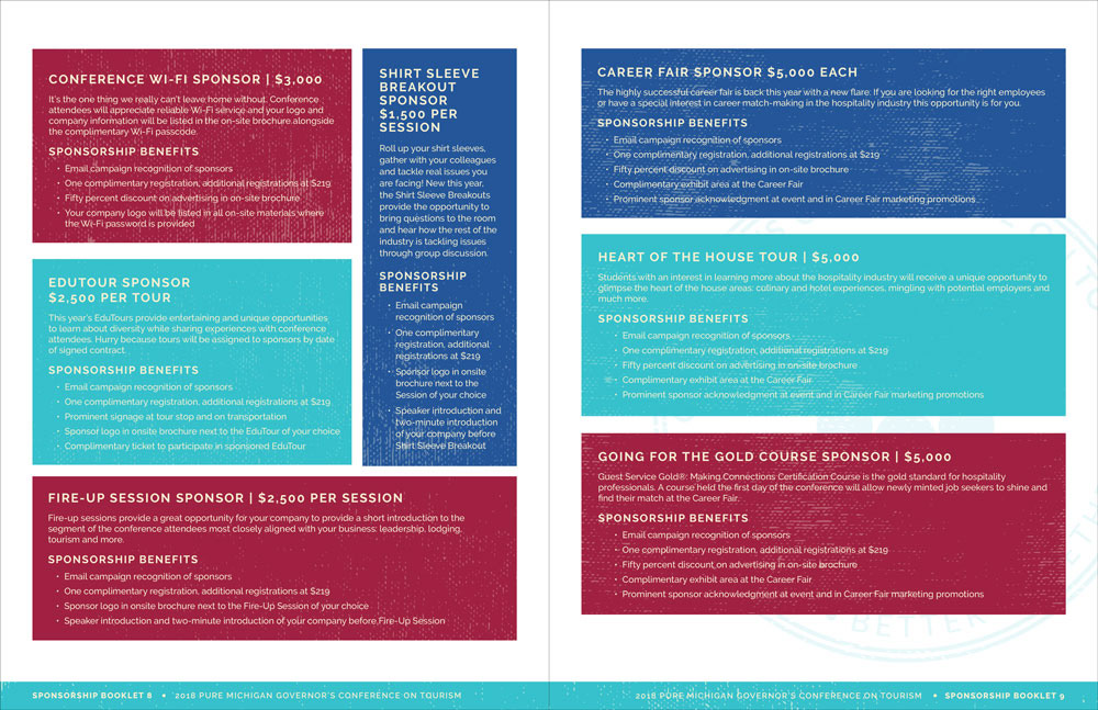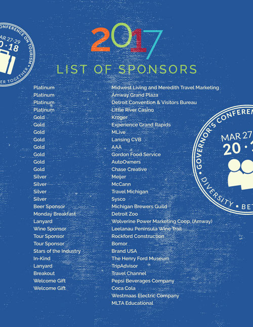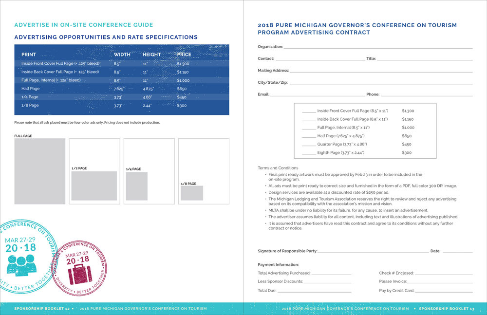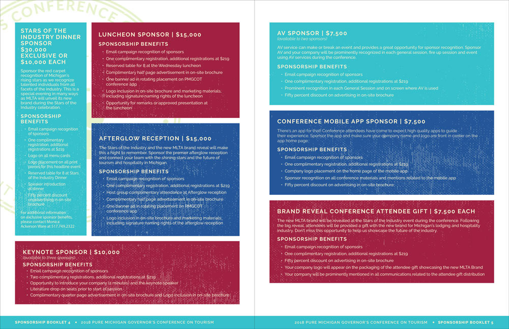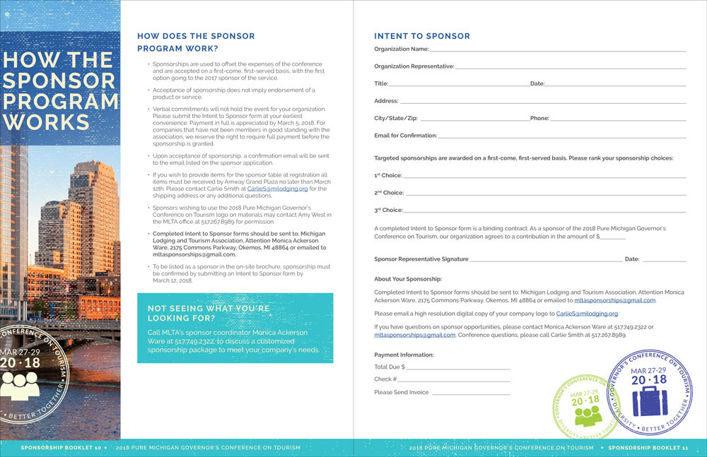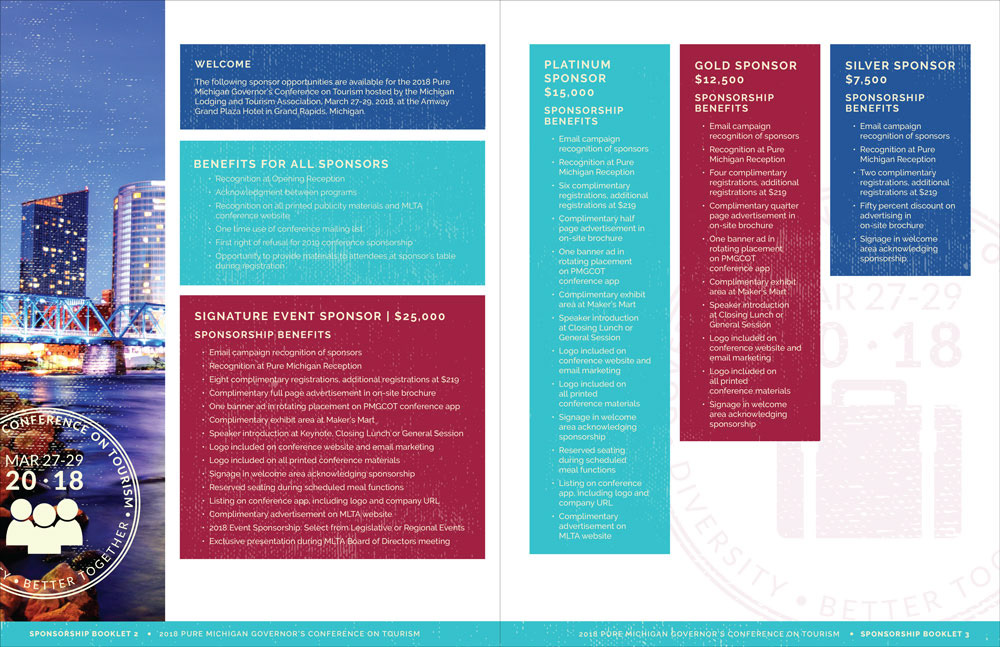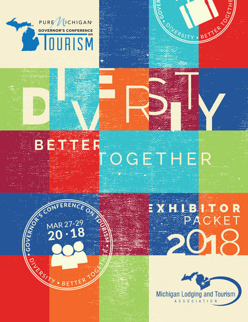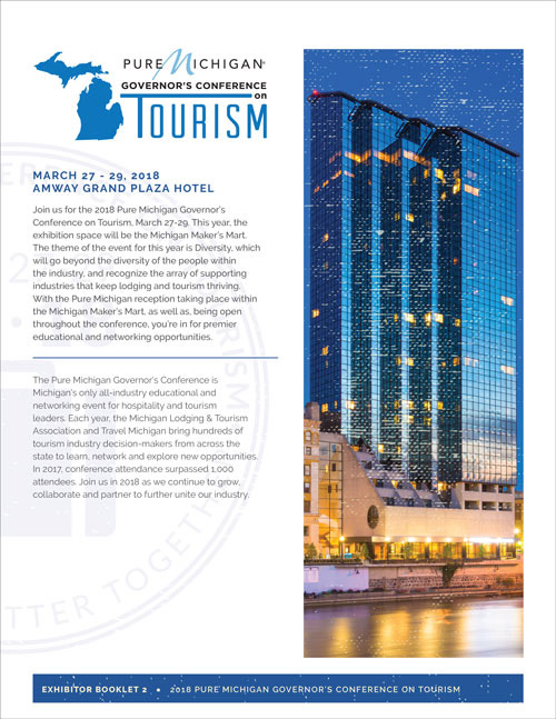 Michigan Lodging Tourism Association 2018 Governor's Conference collateral (sponsorship packet, social images, exhibitor packet and save the date postcard)